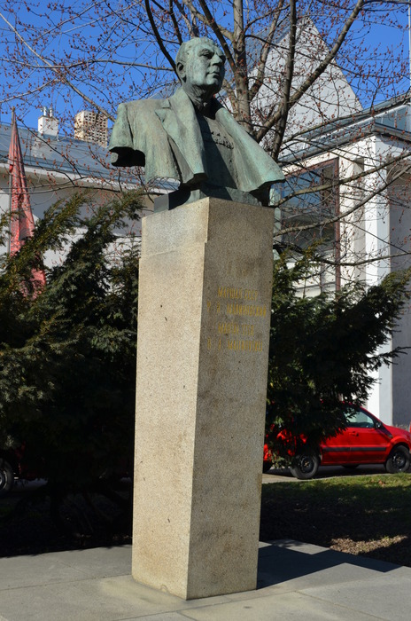 - Busta byla odhalena 5. 11. 1950. Do parčíku před dnešní Dům umění byla přemístěna r. 1955.