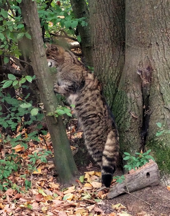 Ovšem hlavní atrakcí ve středisku je chov koček divokých, šelmy, která se na území parku vyskytuje a daří se jí. Roku 2025 návštěvníci mohli zahlédnout tři exempláře. Žijí ve velkých klecových výbězích (částečně uvnitř budovy, částečně venku). Musíte mít štěstí, abyste je zahlédli. Pokud si kočka usmyslí, že nevyleze z úkrytu, neuvidíte ji. Doporučujeme proto vyhlédnout si čas, kdy zaměstnanci kočky krmí. To se kočky divoké prý objeví pro objektivy fotoaparátů a zraky diváků téměř vždy.