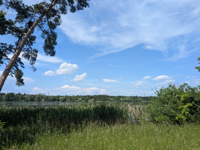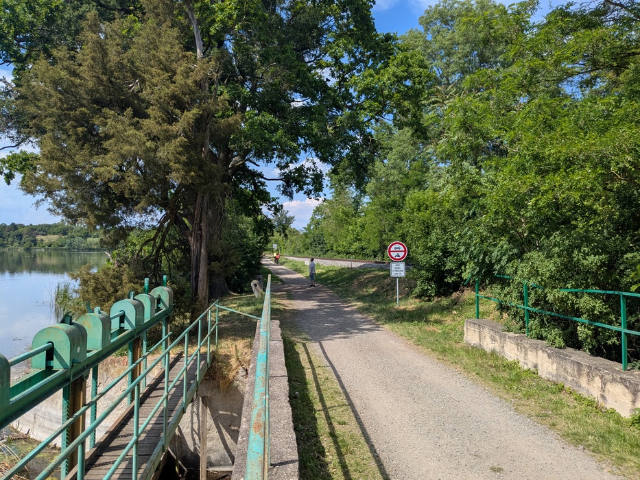 Celý rybník lze pohodlně po cestách nebo pěšinách pohodlně objet na kole. Na jižním břehu jeďte po lesní asfaltové silnici kolem Chrámu Tří Grácií.
