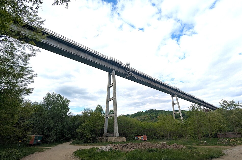 - Původní most byl postaven v letech 1868-1870. Most je 373,5 metru dlouhý, horní mostovka je asi 45 metrů nad hladinou řeky Jihlavy. Nový most vedle původního začal sloužit r. 1978.
