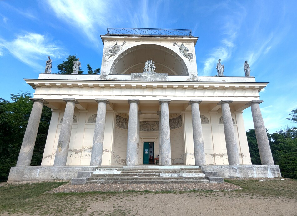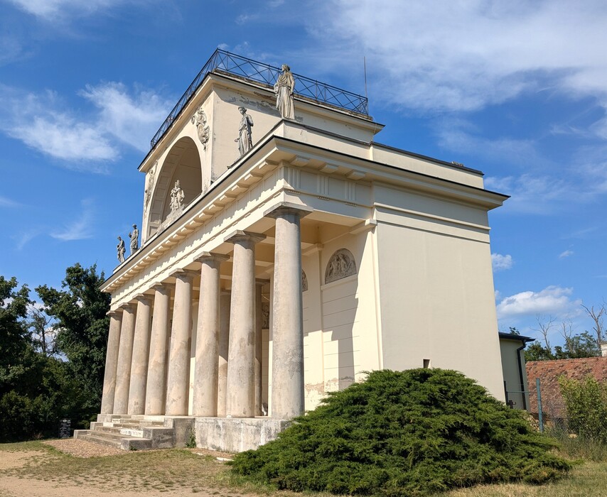 Na jižním břehu Mlýnského rybníka v Lednicko-valtickém areálu se v zeleni tyčí Apollonův chrám, malý zámek postavený v l. 1817-19 vídeňským architektem Josefem Kornhäuselem, který v lichtenštejnských službách pracoval jako stavební ředitel. Stavbyvedoucím byl lichtenštejnský stavitel Poppelack.