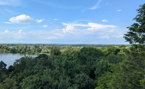 Ze střechy zámku lze přehlédnout část okolí, zejména pak Mlýnský rybník, ale vidět je i např. Břeclav, Pálava a Malé Karpaty i Bílé Karpaty. Vstup je zpoplatněn. Otevřeno je v červnu až srpnu v 9.30 - 17.30 hod., při slunečném počasí do západu slunce, i déle. V ostatních měsících je otevírací doba v rámci dne i týdne kratší, ale po telefonické domluvě provozovatel může otevřít kdykoli. Vystoupit na vyhlídkové místo rozhodně doporučujeme, nejen kvůli výhledu, ale také pro zájemce, kteří se chtějí dozvědět něco více o stavbě zámečku. Na schodišti uvidíte staré fotografie, snímky z účetních knih a další zajímavosti.