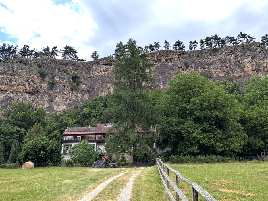 Z Hostimi: jděte po žluté značce k jihu, u soutoku potoka Kačáku s Berounkou doprava a odtud okolo lomu Alkazar po cyklostezce. Celkem 2,5 km.