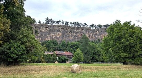 Samota a bývalé zahradnictví Šanův kout na levém břehu Berounky mezi Berounem a Srbskem patří k nejhezčím místům Českého krasu. Nad loukou se samotou se táhne asi 900 m dlouhé a 25 m vysoké skalní defilé s typickou šedavou barvou horniny a dvěma obřími pruhy rezavé barvy. Skály přerušené dvěma menšími údolíčky v názorném profilu dokládají tufiticko-karbonátový vývoj geologického období wenlocku (mezi 433,4 – 427,4 mil. lety v prvohorách - v siluru) a jsou nalezištěm zkamenělin, zvláště korálů a brachiopodů. Lokalita je cenná mj. tím, že profil je přírodní - nebyl odkryt v lomu.