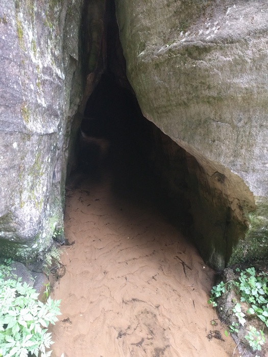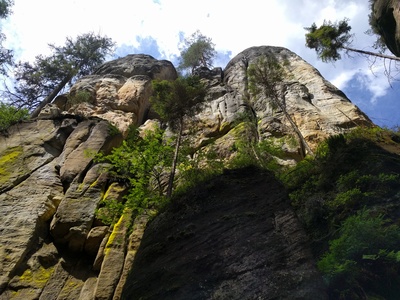 0,82 km, Gotická branka. Zde se nacházel původní vstup do skal. Branku nechal zhotovit roku 1839 Ludvík Karel Nádherný spolu se sítí turistických chodníků, mostů, lávek a schodišť.