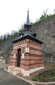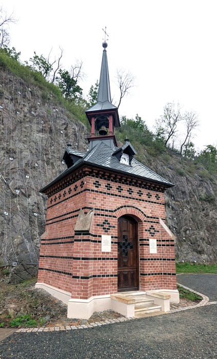 Přitažlivým místem je u jižního portálu rekonstruovaná kaple sv. Antonína a sv. Barbory. Stavbička z r. 1884 od architekta Aloise Franze zhotovená stavitelem Hugo Hradiským přežila zánik osady Kamenný Mlýn. R. 2022 byla oceněna jako nejlépe opravená drobná památka Jihomoravského kraje. Doplňme, že sv. Antonín Paduánský je ochránce chudých a sv. Barbora z Nikodémie je patronka horníků a stavebních dělníků.