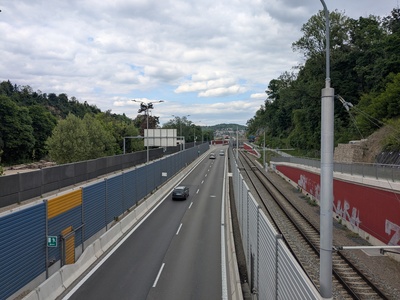 Tunel pro tramvaje byl spolu s částečným otevřením silniční galerie zprovozněn r. 2023, plný provoz funguje od r. 2024.