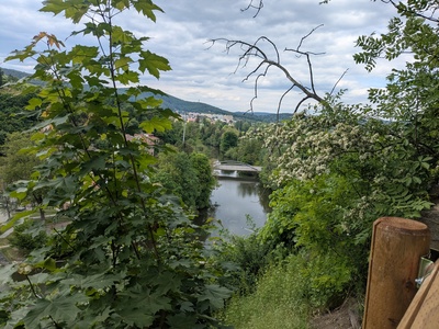 Z Pisárek: jděte od zastávky Pisárky podél tramvajové trati k severu.