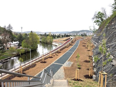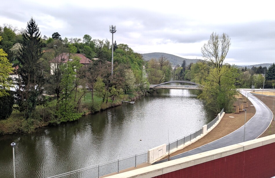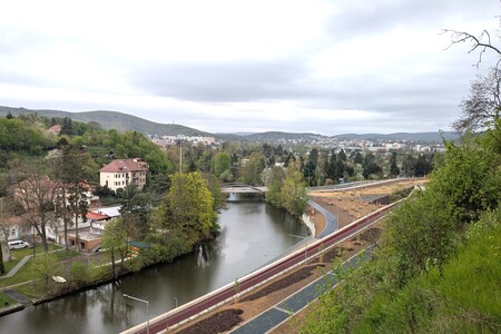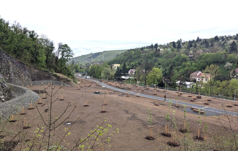 Nad silnicí a tramvajovou tratí v příkrém svahu mohli Brňané chodit na procházky ve Wilsonově lese, ale některé ze stezek končily slepě u silnice, o jejíž přecházení se nikdo nepokoušel, neboť to bylo životu nebezpečné. Nakonec stezky zarostly. Život pěších a cyklistů se soustředil na pravém břehu řeky, kde byl jeden z chodníků částečně upraven a prohlášen za cyklostezku, po níž vede jednak přístupová komunikace z centra na Brněnskou přehradu, jednak dálková cyklotrasa č. 1 Brno - Praha.