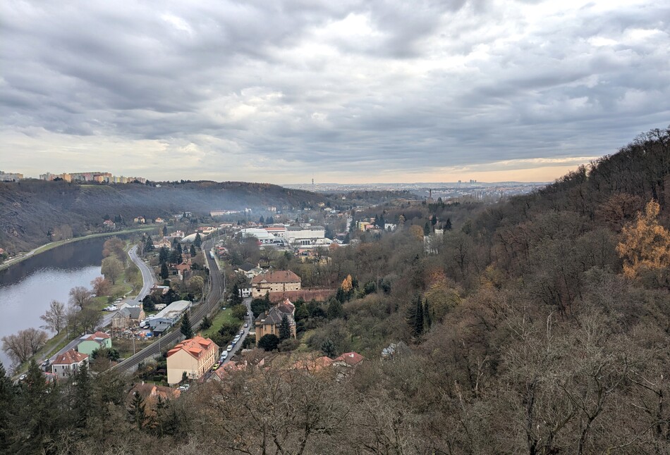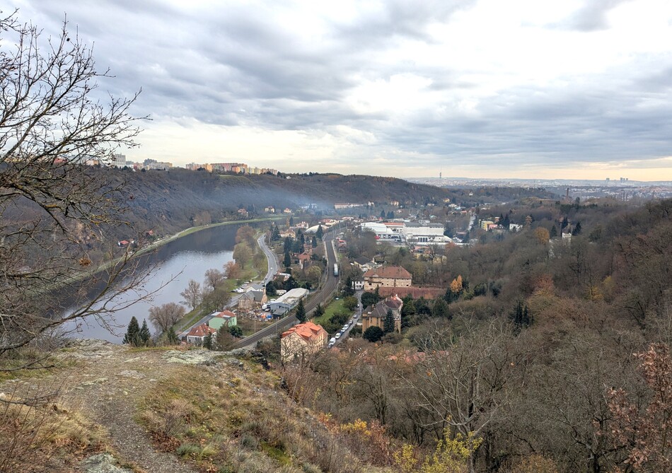 Krásné místo nad vltavským kaňonem severně od centra Prahy