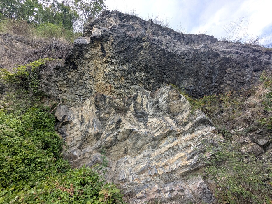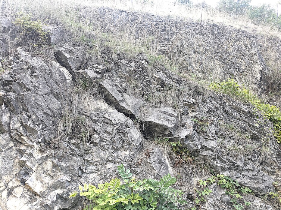 V jižní části skály jsou vyvinuty polohy usazenin - brekcií, což jsou úlomky jemnozrnných vápenců tmelených hrubší zrnitou základní hmotou.