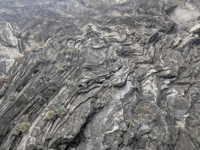 Ani na druhou otázku zvídavých návštěvníků s určitostí neodpovíme. Jak je možné, že zrovna tady, na Barrandově skále, jsou vrstvy tak silně zvrásněny a třeba jen "kousek" vedle na Klonku u Suchomast vrstvy nemají zvrásnění takřka žádné?