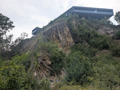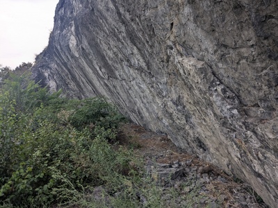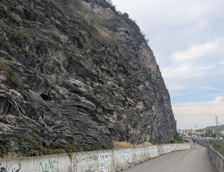 Skála je přirozeného původu jen v nejvyšší poloze, ve většině profilu ji odlámali francouzští vojáci při stavbě silnice r. 1742 a pak budovatelé železniční trati r. 1862.