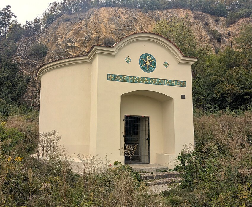 Kaplička byla původně postavena jako sklad střelného prachu francouzských vojsk r. 1742. Později sloužila dělníkům v lomech jako skladiště materiálu. Na kapličku byla upravena až v roce 1847 po neštěstí v lomu dcerou majitele lomů Marií Hergetovou. Je zasvěcena Panně Marii Bolestné.