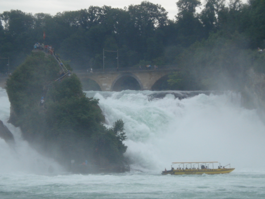 Rýnské vodopády jsou dopravní překážkou pro lodě. Veškeré pokusy o výstavbu vodního tunelu, jezu a plavební komory ztroskotaly na zásadním nesouhlasu místních iniciativ. Zboží ze severního Německa a Nizozemska se do oblasti kolem Bodamského jezera dostává po souši, ačkoli by při letmém pohledu do mapy mohla posloužit jinak hodně frekventovaná vodní trasa na Rýnu. Pro velké nákladní lodě je ale Rýn splavný až z Basileje. Turistické výletní lodě ale můžete využít na několika úsecích na Bodamském jezeře a také nad i pod vodopády.