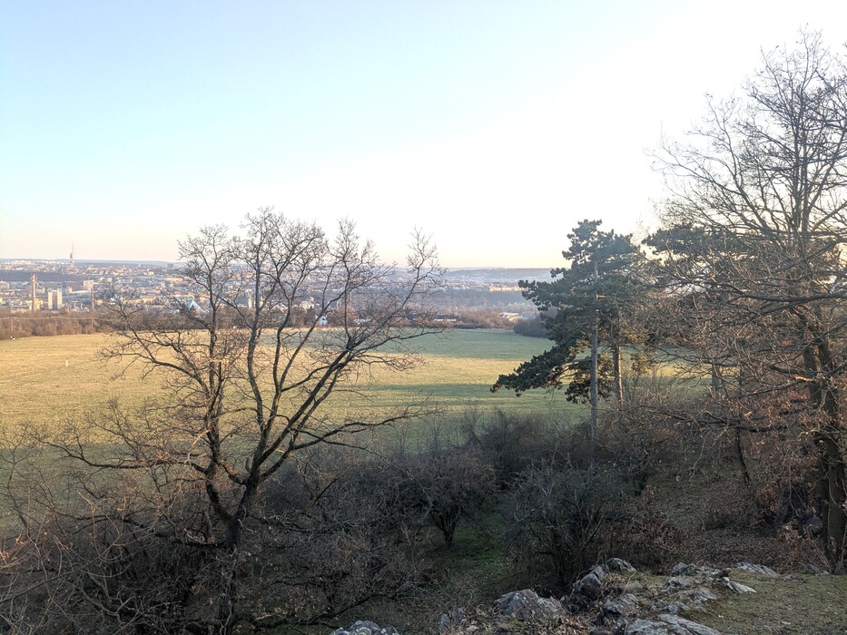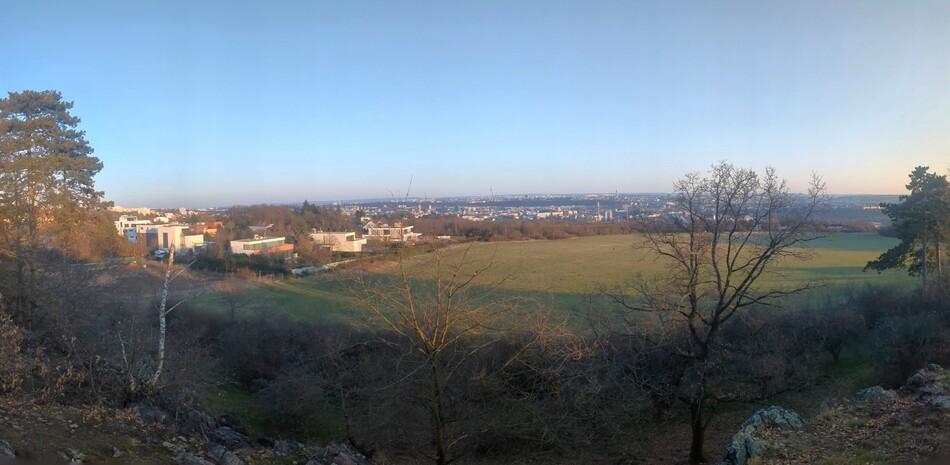 Zatímco sever přírodní památky Velká skála se nepodařilo přírodovědně zachránit, jižně odtud je situace zoologicky a botanicky příznivější. Orná půda je zatravněna, jižně od skály se rozkládá obří louka o rozloze asi 10,5 ha. Další plochu o rozloze nejméně trojnásobné pokrývají zahrádkářské kolonie, bývalé sady a fragmenty lesů vysazovaných jako "zelený pás okolo Prahy" v 80. letech 20. století.