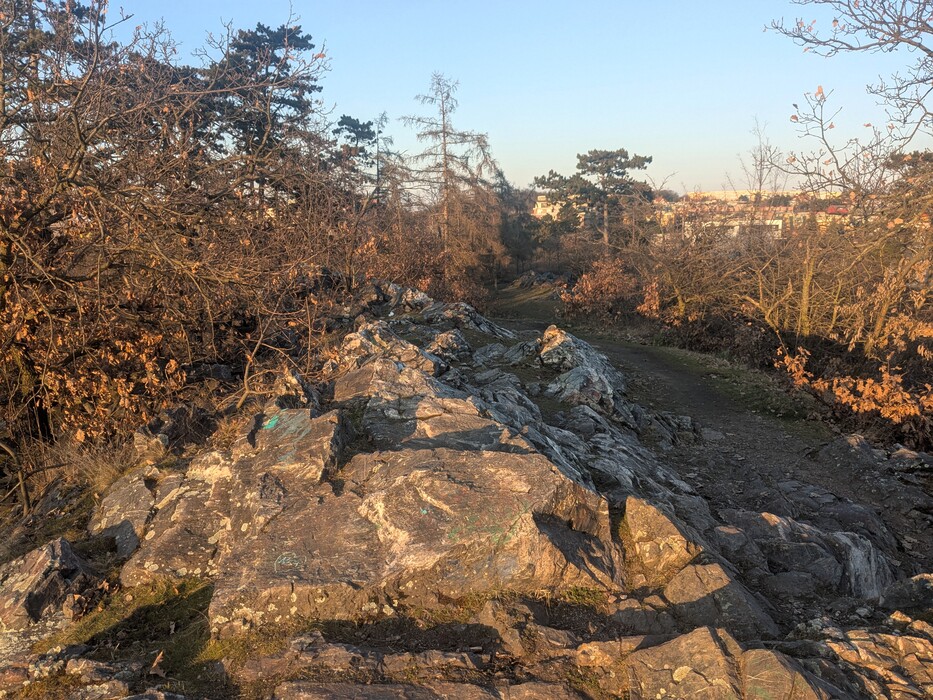 "Učebnicovým" příkladem je Velká skála, buližníkový skalní suk, který je sousedem panelového sídliště Bohnice.