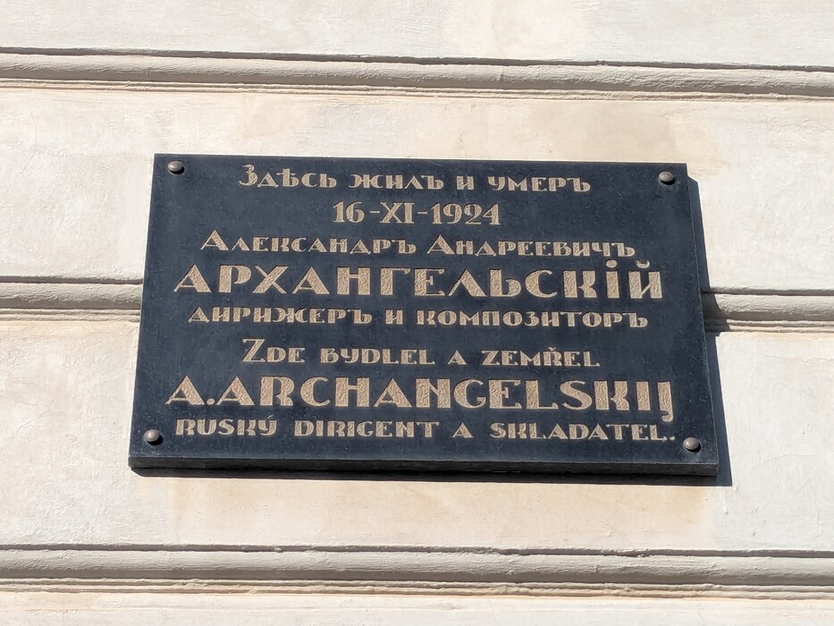 V domě na nároží ulic Koperníkova a Máchova na pražských Vinohradech bydlel ruský skladatel Alexandr Andrejevič Archangelskij (11. 10. 1846 Staroje Těžikovo - Rusko - 16. 11. 1924 Praha). Když mu bylo 76 let, poprosili ho dopisem krajané, kteří utekli před revolucí do Československa, aby jim vedl pražský pravoslavný pěvecký sbor v kostele sv. Mikuláše na Staroměstském náměstí.