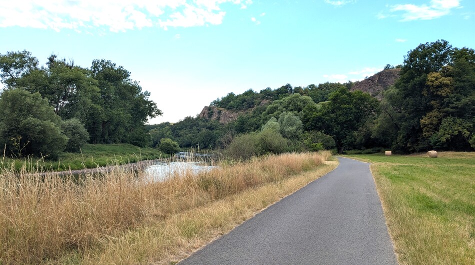 Ze Srbska, žel. zast.: přejděte nejdříve na druhý břeh Berounky a pak jděte po levém břehu po cyklostezce proti proudu. Celkem 2 km.