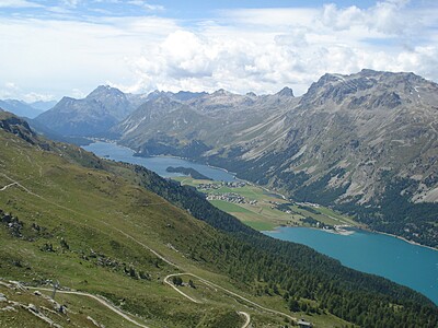 Horní stanice lanovky pod stejnojmenným vrcholem. Úchvatný zážitek v Alpách nad Svatým Mořicem.