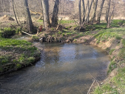 Přírodní tok na jihovýchodě Prahy