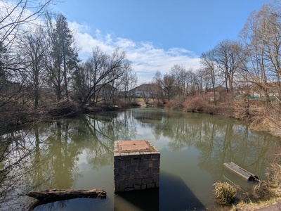 Vodní plocha na Suchomastském potoce, pravostranném přítoku Litavky